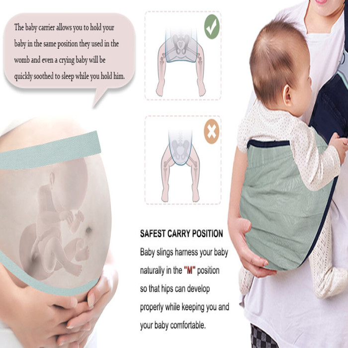 ✔️ এই বেবি ক্যারিয়ারের একটি সি-আকৃতির নকশা রয়েছে যা আপনার শিশুর কশেরুকার আকৃতির সাথে মানানসই এবং আপনার শিশুর আরামের জন্য আপনার শিশুর পা গুলোকে M-আকৃতিতে সুরক্ষিত করে।